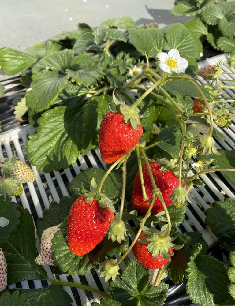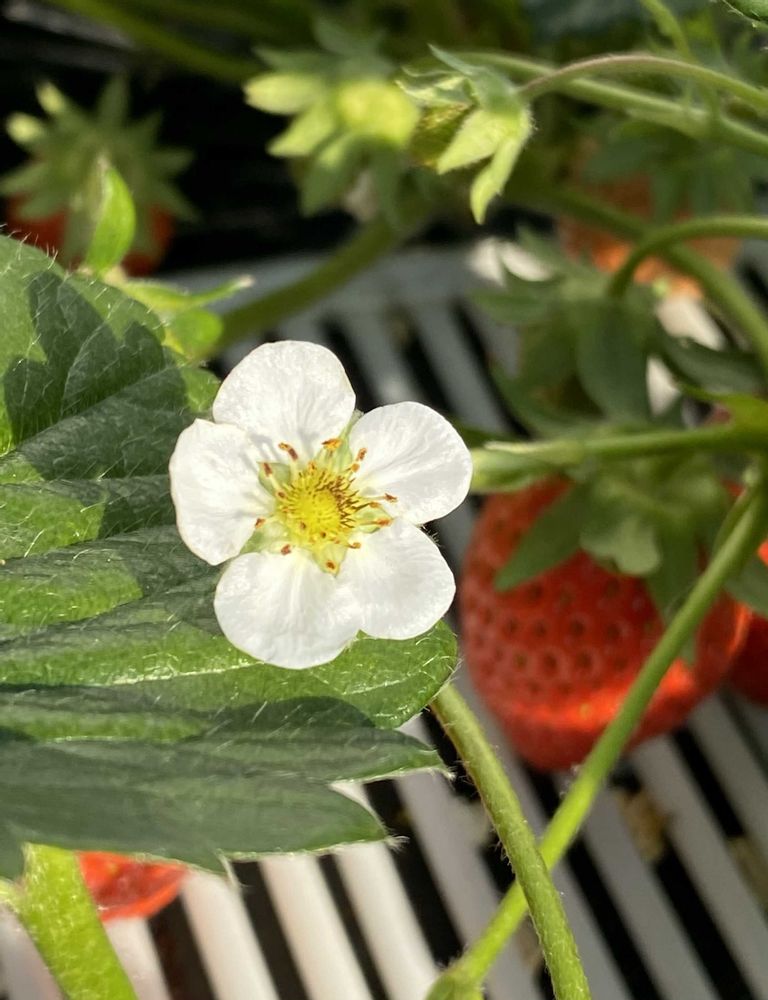 毎年きまった農園さんへいちご狩りに行き、いちごをたっぷり食べますが、あらためていちごの花をよく見ていたら、梅の花に似てるなぁ🤔