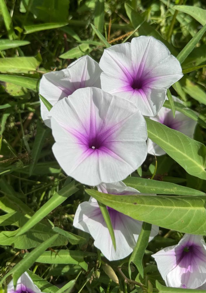 はい。空芯菜です。日本で見た空芯菜の花は白かったのですが、こんな色もあるみたいです。空芯菜は地元で手に入る貴重な葉物野菜の一つです。🌱