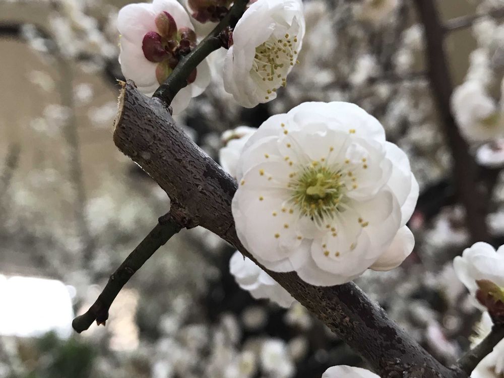 今日は、花壇の様子を見てから梅まつりを見てきました