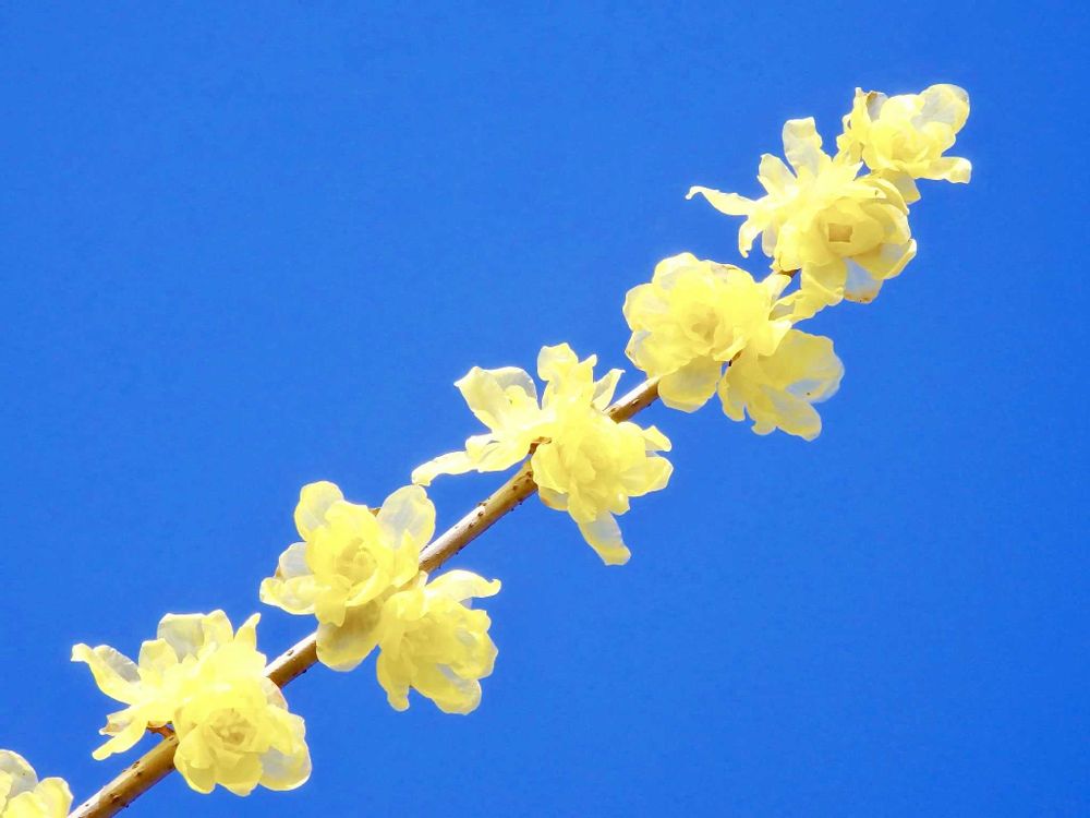 " 青空に映える蝋梅の花 "