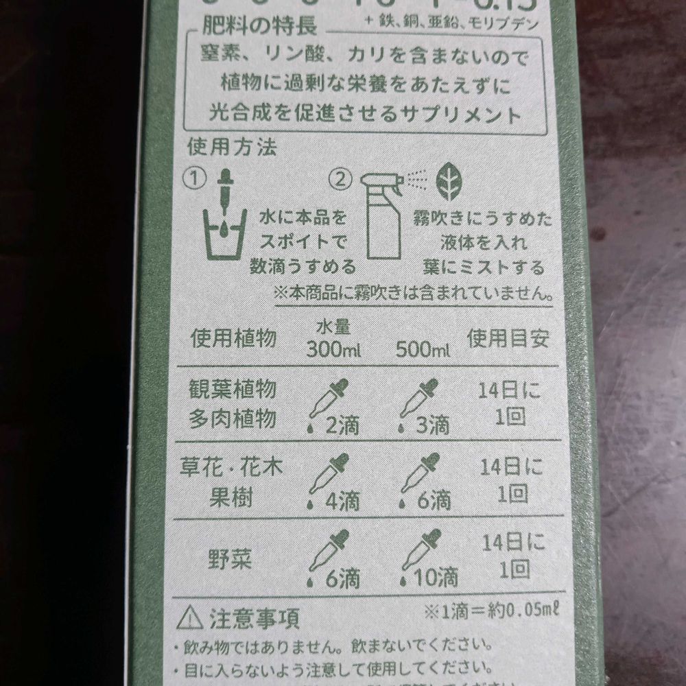 14日に一度吹きかけるらしいけど、乾いてると直接根っこにかけてもいいみたい。