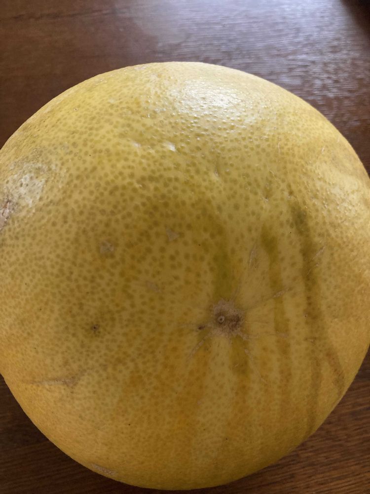 ③お隣りさんから大きなザボンがやって来ました。グレープフルーツの香りがしました。