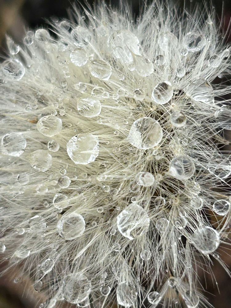 風に吹かれてふわっと飛んでいく綿毛もいいけど、雪解けの後の雫ともふもふのコラボも普段とは違う発見😍