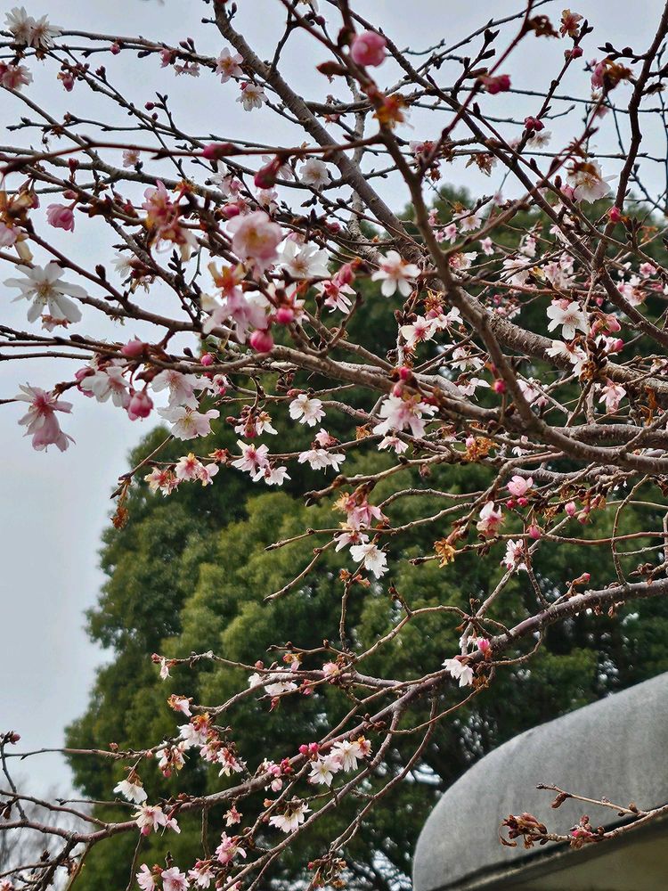 お花が少ないので冬なので、十月桜🌸咲いててくれて、ありがたいです🌸🌸🌸