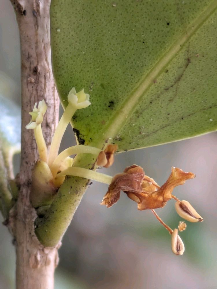 ギザギザしたヒイラギの葉も、老木になると丸くなる(∗ˊᵕ`∗) 雄しべの数も変異する?! 雄株では実を作ることなく白い花は茶色になって落ちていく🟤