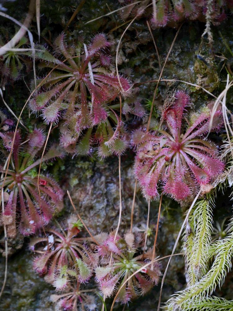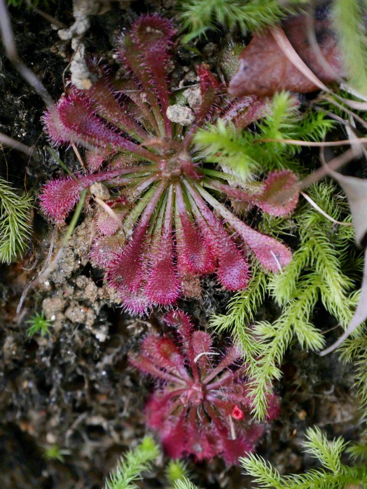 去年知った保護区でもない自生地訪問 D.ロツンディフォリアと違い冬芽を作らないこやつは流石に寒いからなのか粘液を出していませんが鳥餅タイプの食虫植物です。ロゼット状に拡がり直径5cm位の大きさでした。ここらでは赤土(酸性)が露出した日当たりの良い南斜面の段丘崖によく見られましたが災害防止で整地化してしまい地肌が露出した段丘崖はほとんど残ってなく故に自生地も少なくなってます。