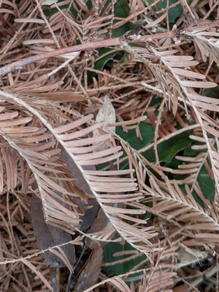 可愛いメタセコイアの実は秋には沢山落ちてましたが少しだけ見つけたのは、色もあせて種を初めて見せてくれました❦