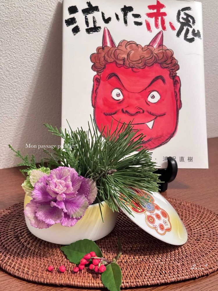 この絵本に登場する、赤鬼さん青鬼さんは、とてもいい鬼です。豆はぶつけないでね。