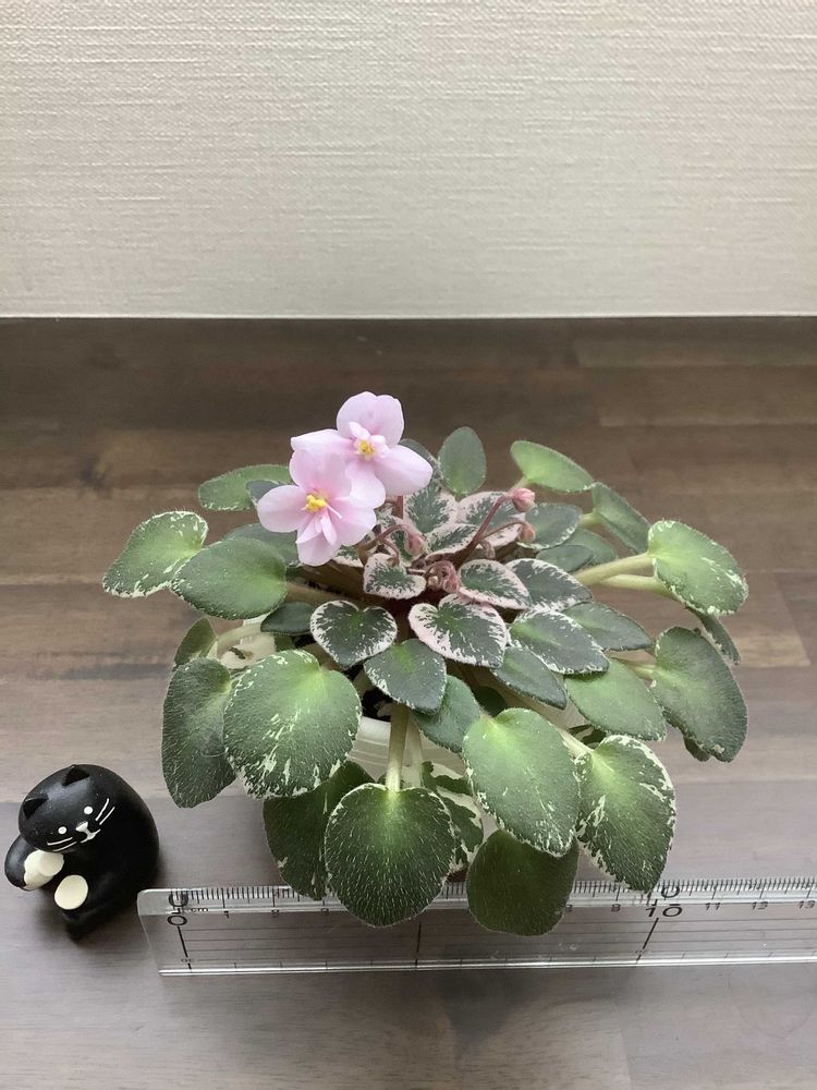 斑入り葉にピンクが可愛いミニセントポーリア。株の直径は10センチくらいです。