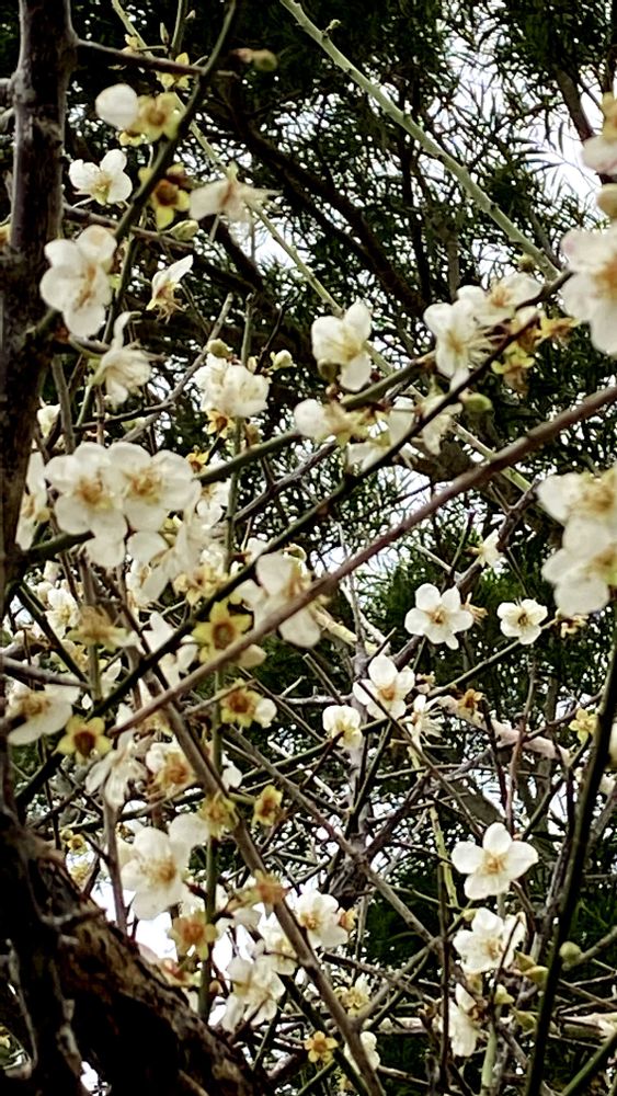 可愛い白い梅の花が見頃です💕🤍🤍🤍そしてピンク色の寒緋桜も咲きはじめていて…見頃の木もありますね😳この時期…梅の花と桜の花が同時に見れます🌸🤍🌸🤍🌸