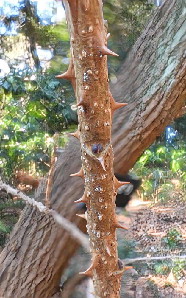 とても鋭いトゲのハリギリの冬芽と葉痕です🌳