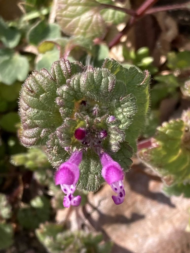 おはようございます😃今日は立春、暦の上では春!この時期らしい寒さ😨春の七草の一つホトケノザが咲いていました。横から撮れなくて上からです🌸