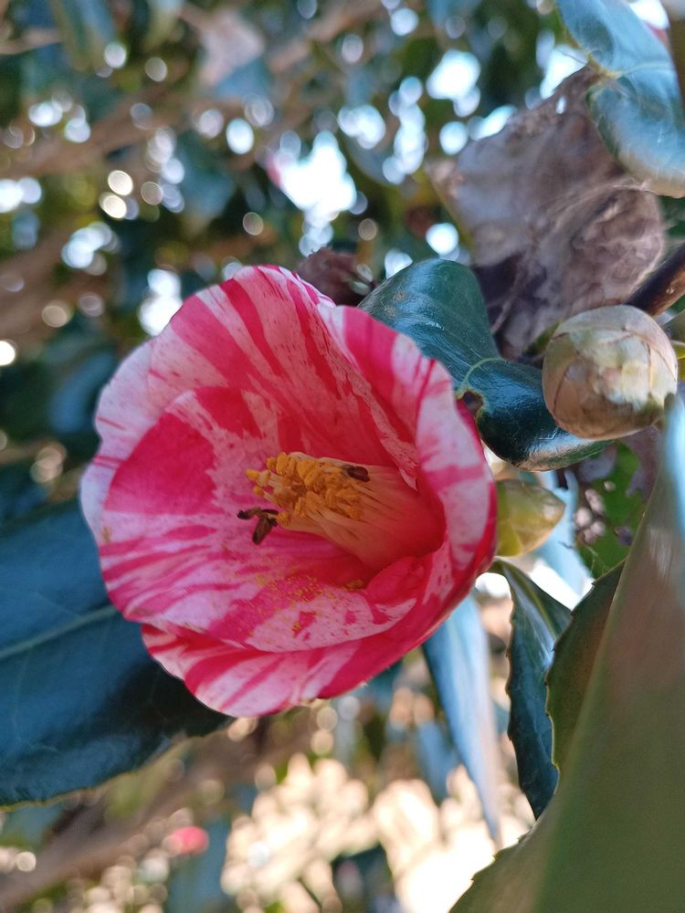 公園のツバキ、1本の木に色んな色のお花が咲いてました。