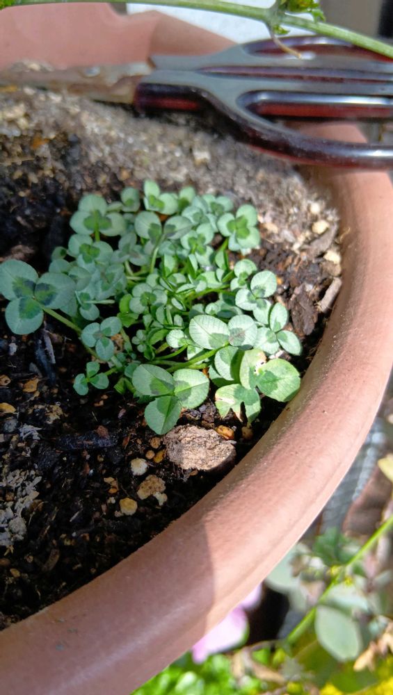 庭で、見つけて掘り上げて来た、クロバー☘️で〜す。🤭