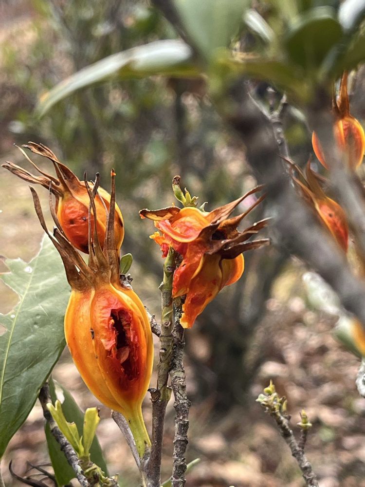 実の口が開かないから「クチナシ」というらしいですが、今の時期でもまだ残っていた「クチナシの実」、確かにクチは開いてませんネ。😚