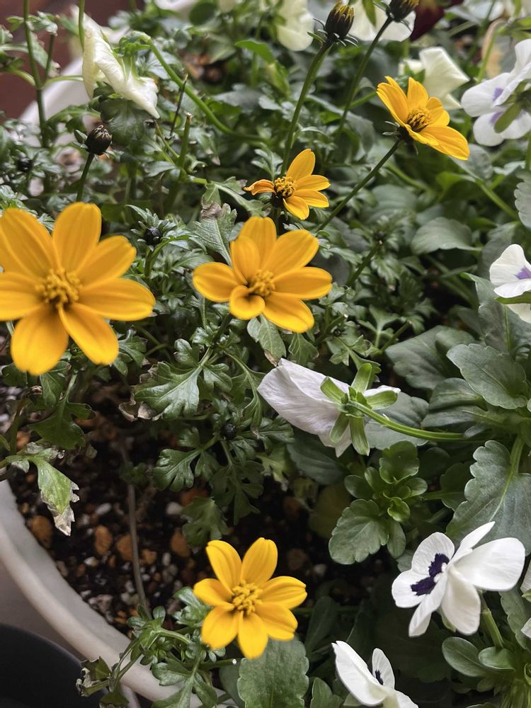 ②見切り品の寄植え、ポツリポツリと咲いてます。春になったらモリモリになってくれるかな〜