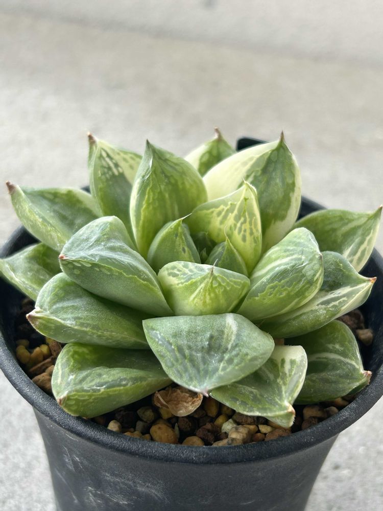 大型というだけあって葉が超肉厚で、まるでコレクタのような大きさです。少ないですが斑も入っていて、鮮やかで綺麗ですね✨