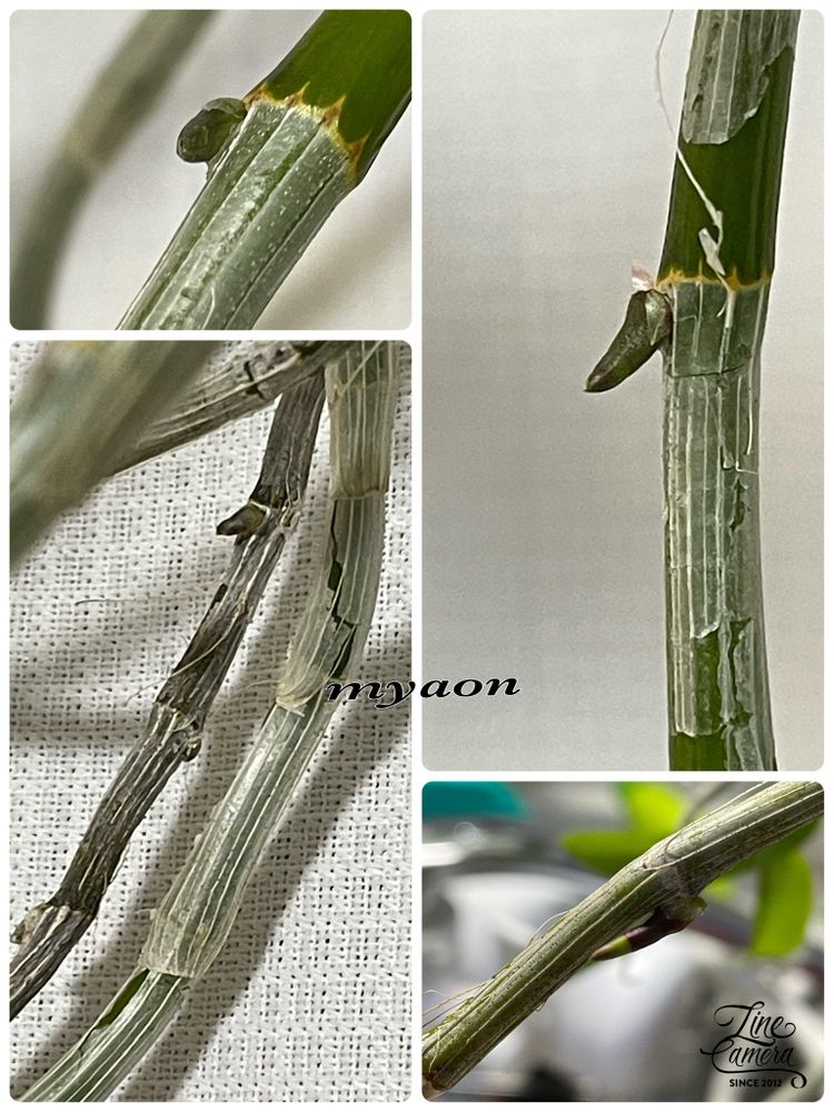 2枚目: デンドロビウム アフィラム(ピエラルディ)シャイニング ピンク時期的に花芽だと思う🤔ポツリポツリ嬉しい発見🩷