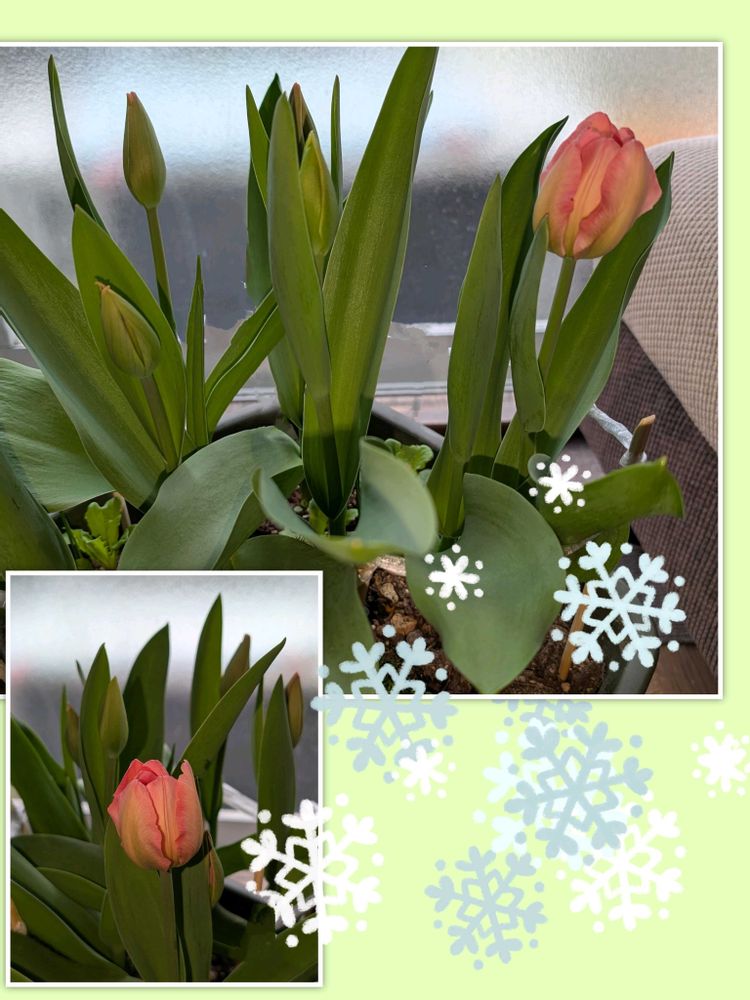 アイスチューリップ🌷さん、リビングに入れて咲いたのですね。可愛いですね💗