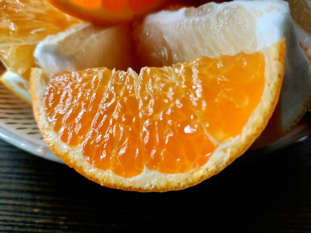 美味しそーね。🍊大好きです。みずみずしくて飛びつきたいくらいで~す。