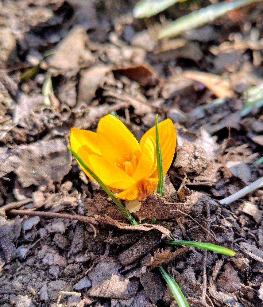 耕してしまって土に埋もれてしまったけど、クロッカスも無事開花💮