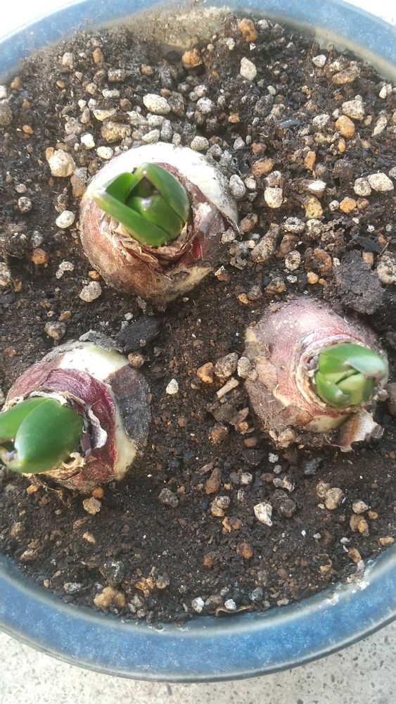鉢植えは、出窓に置けるかな?と、12月に成り、バラ売りが有ったので、3球根買いました。