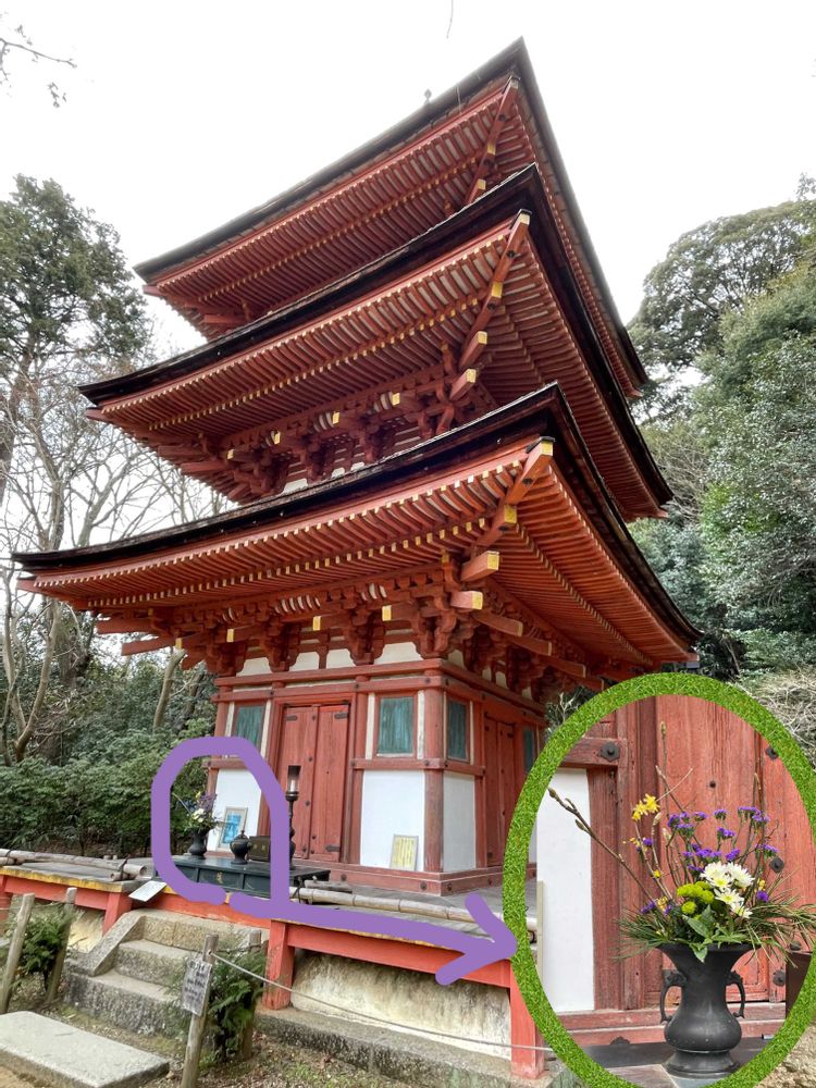 三重塔と活け花