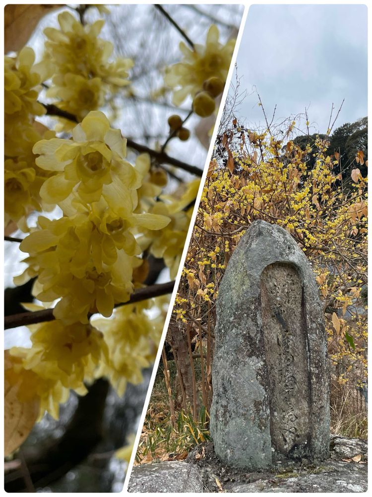 ② ロウバイ(蝋梅)と"浄瑠璃寺境内"の石碑