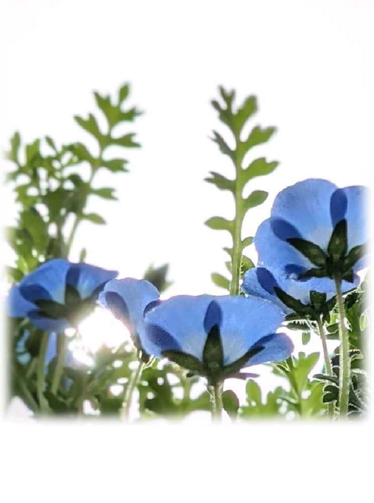 朝日に透けて輝くネモフィラの淡い優しい水色