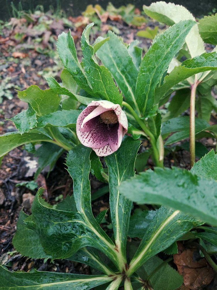 種から育てた2年目のクリスマスローズが咲きました。去年咲いた違う種類のクリスマスローズは3月になって咲き始めましたが、今年はずいぶん早く咲きました。