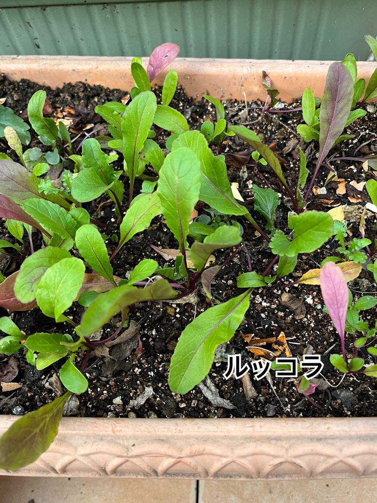 まだまだ葉っぱが小さいけど間引き菜を食べたら、ルッコラのピリ辛の味がしました。