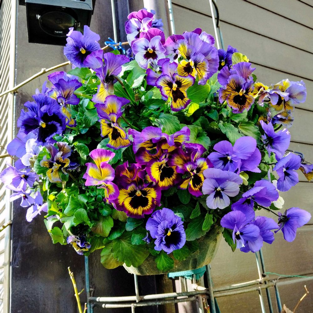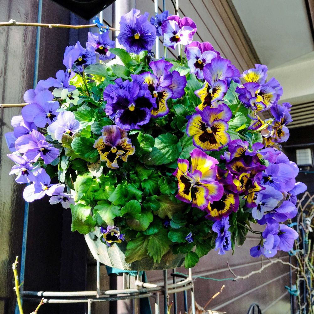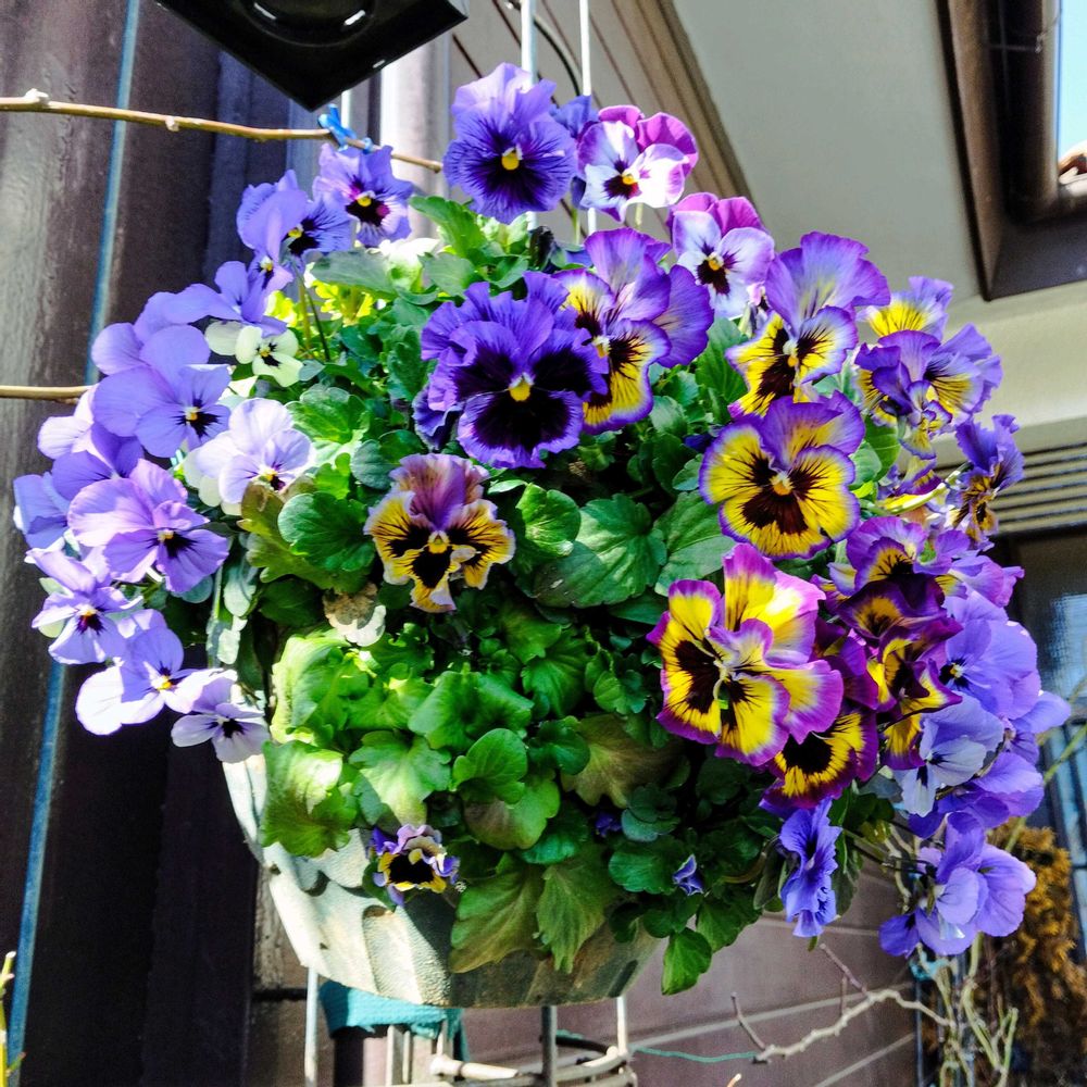 虹色スミレと良く咲くスミレ、ビオラのハンキング🌿その後
