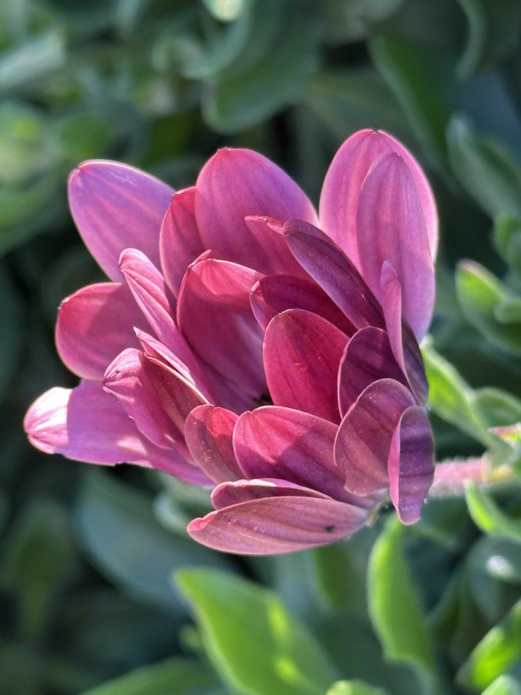 Osteospermum fruticosum/Osteospermum. Asteraceae. Asterales. Magnoliopsida. Tracheophyta Commonly called/Trailing African daisy. Shrubby daisybush Native to/South Africa Symbolism/Peace. Unity. Fun *Genus of about 70 species *Mid green leaves, to 4in(10cm)long, Solitary flowerheads, 2 1/2-3in(6-8cm)across *The genus name Osteospermum comes from the Greek ‘Osteo’ means “bone”, and ‘sperma’ means “seed”, in reference to the hard seeds. Photographed 1/31 9:09am 2025 Posted 2/3(Monday) 11:37am 2024