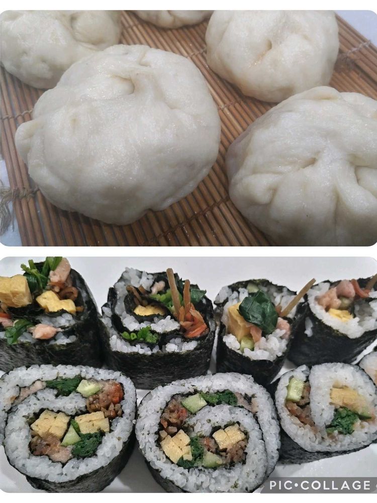 超極太巻き寿司😍具がたくさん入ってとても美味しそう 肉まんも手作りは本当に美味しいですよね😋✨