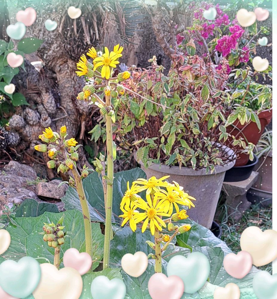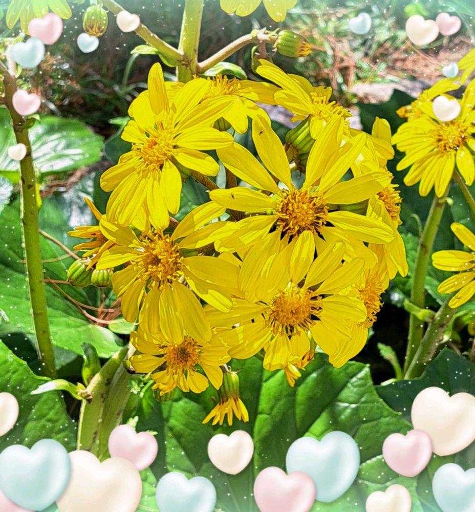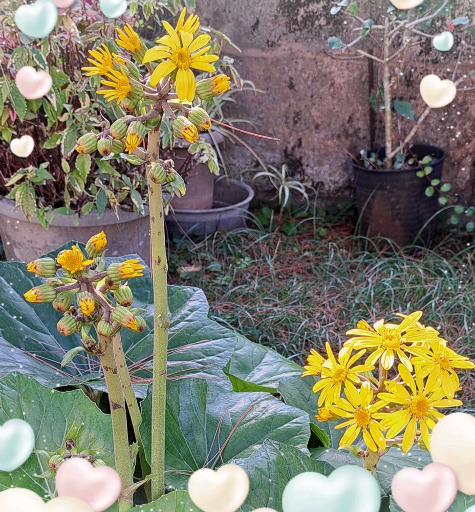 ツワブキは黄色い花も綺麗し 葉っぱも🌿ツヤツヤして素敵です。