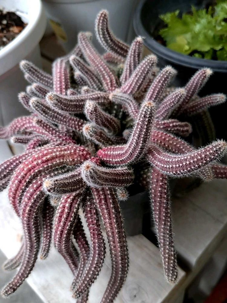 ニョロニョロ白檀さんが赤く紅葉しています❤️日に当てたほうが良いとか良くないとかいろんな情報がありますが、うちのは結構日に当たってます😆✨春になったら花が咲いてくれたらいいなぁ😊💞