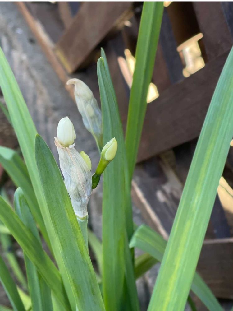 ペーパーホワイトが薄いヴェールを脱ぎ顔を出しました😊