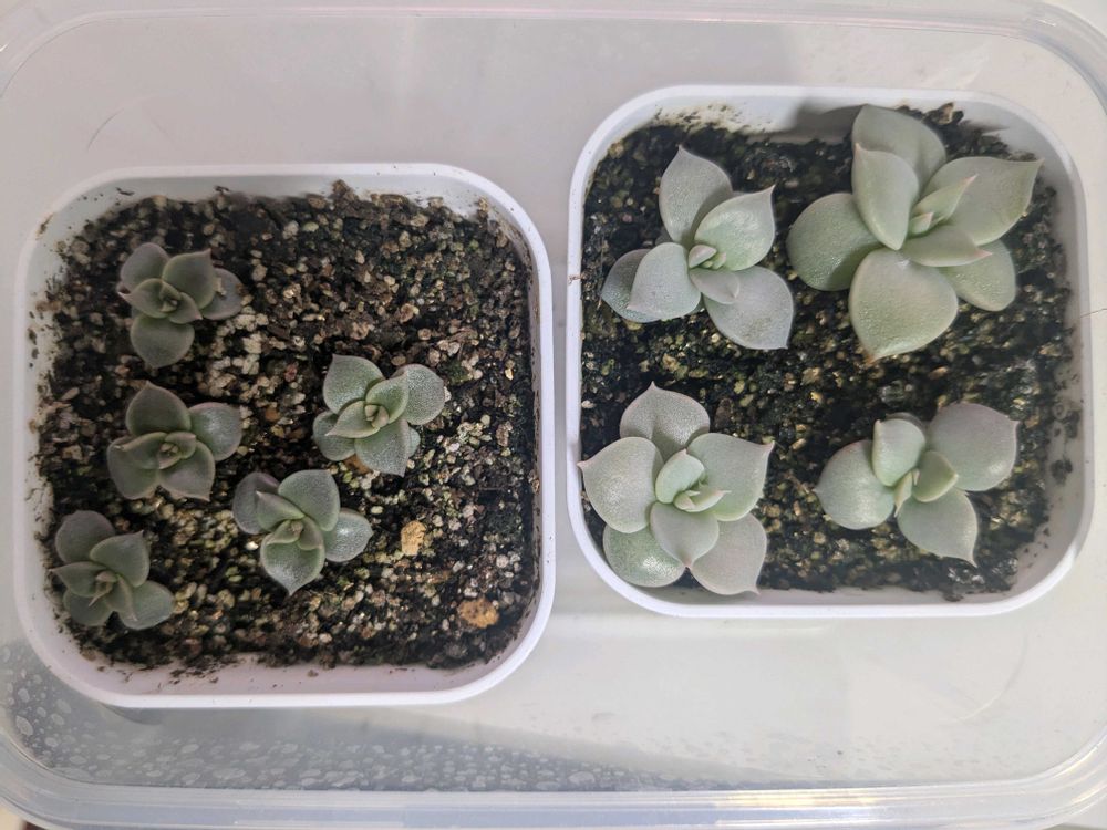2024.07.01 突如多肉植物に興味を持ちました。 2025.07.01 無事(?)2年生に進級。 スペースもないのに実生に手を出し、芽が出た、本葉が出たと一喜一憂しています。綺麗系を綺麗に育てるのが目標です🤣