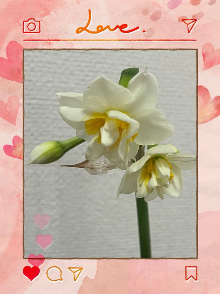 八重の水仙、毎年一つしか咲かないの。植えてる場所替えたポットがいいかも、ね😅