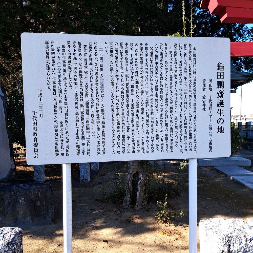 ここは江戸時代文政期に活躍なされた儒学者の亀田鵬斎先生の生誕地となってます 以前邑楽町中野に住む先輩に先生の生まれた五箇村のことをきいたのですが要領を得ず、ひょんなことから案内板を見て知り寄ってきたというしだいです