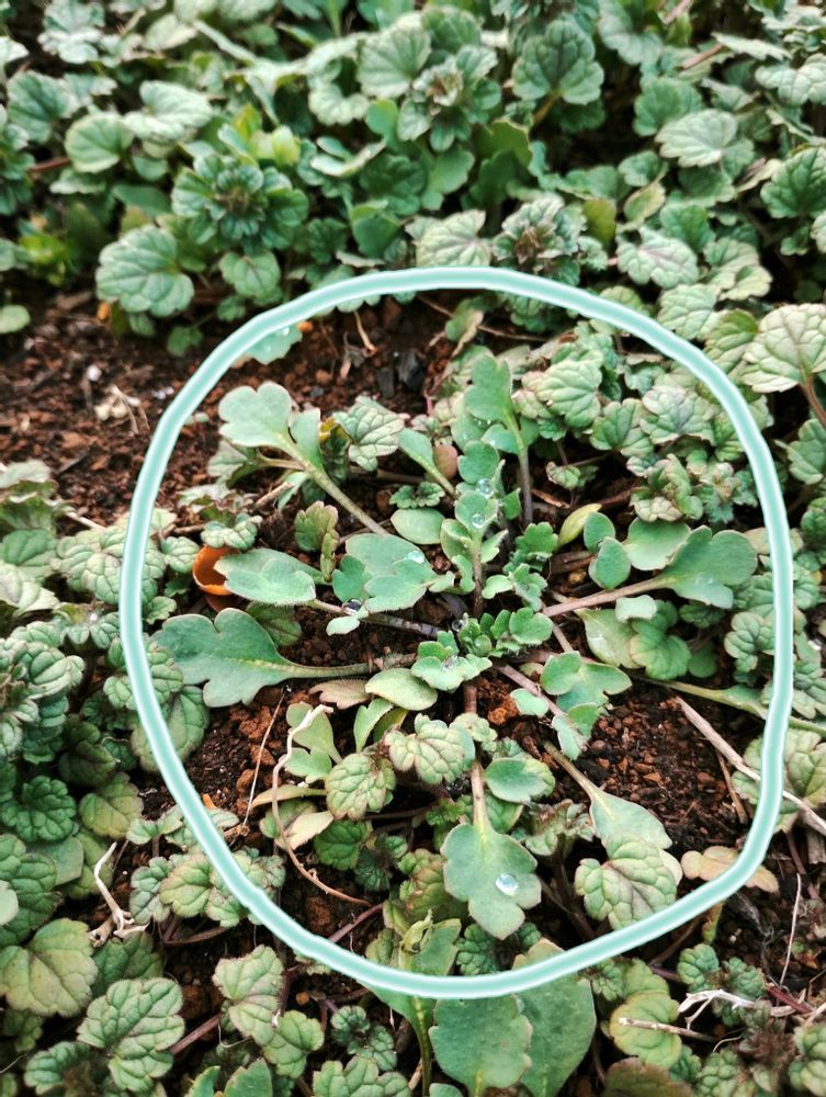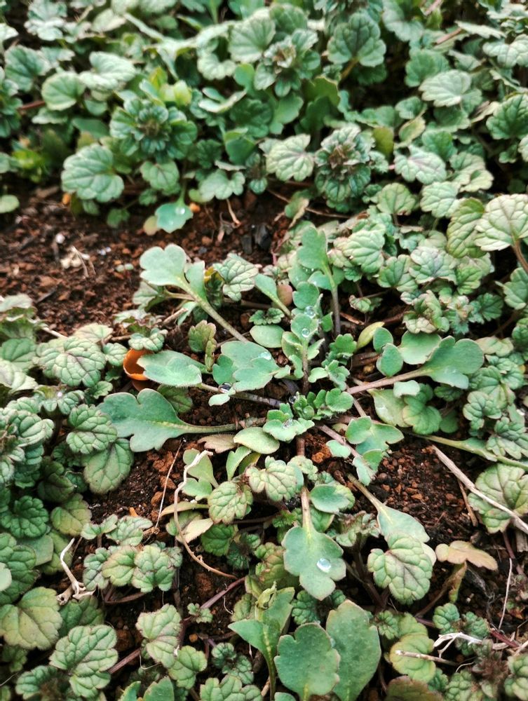 ここは昨秋サカタのタネ「花絵の具ブルーフラワーガーデン」の種を直播きした場所。雑草(ホトケノザ優勢)もたくさん発芽しています。というより雑草の方が多い!!