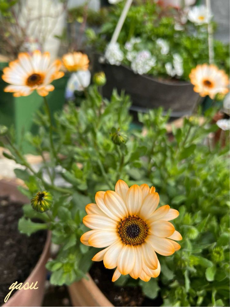 似たようなものですが、ディモルフォセカなんですよ♪ 一年草なので秋頃までかなぁ😌
