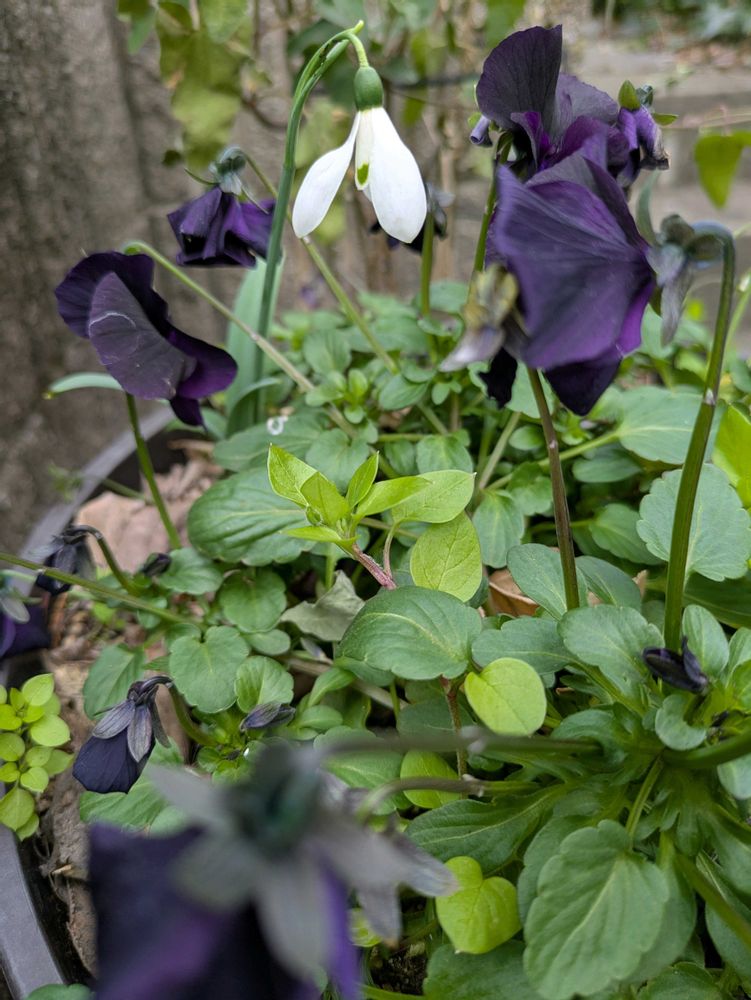 ビオラの中から一輪だけスノードロップだなんて💕羨ましい💕