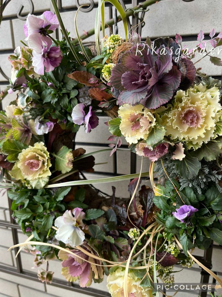 ④ハボタンのリースも軒下に、寒くなるけど頑張れ〜