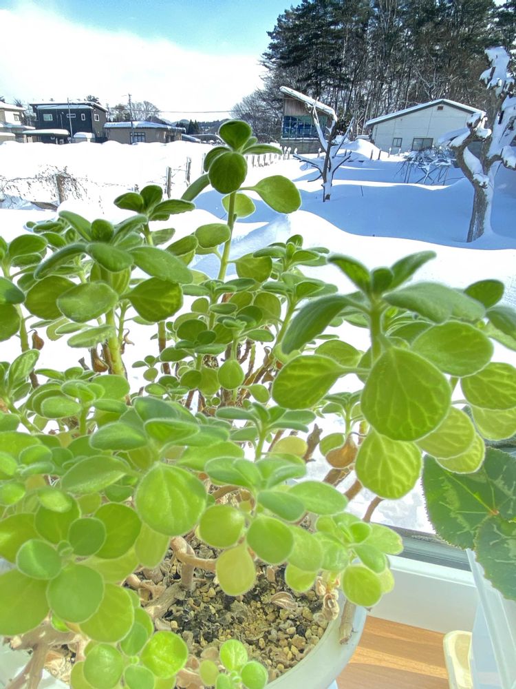 寒さに強い鉢植えの植物達は庭に置いているんだけど、