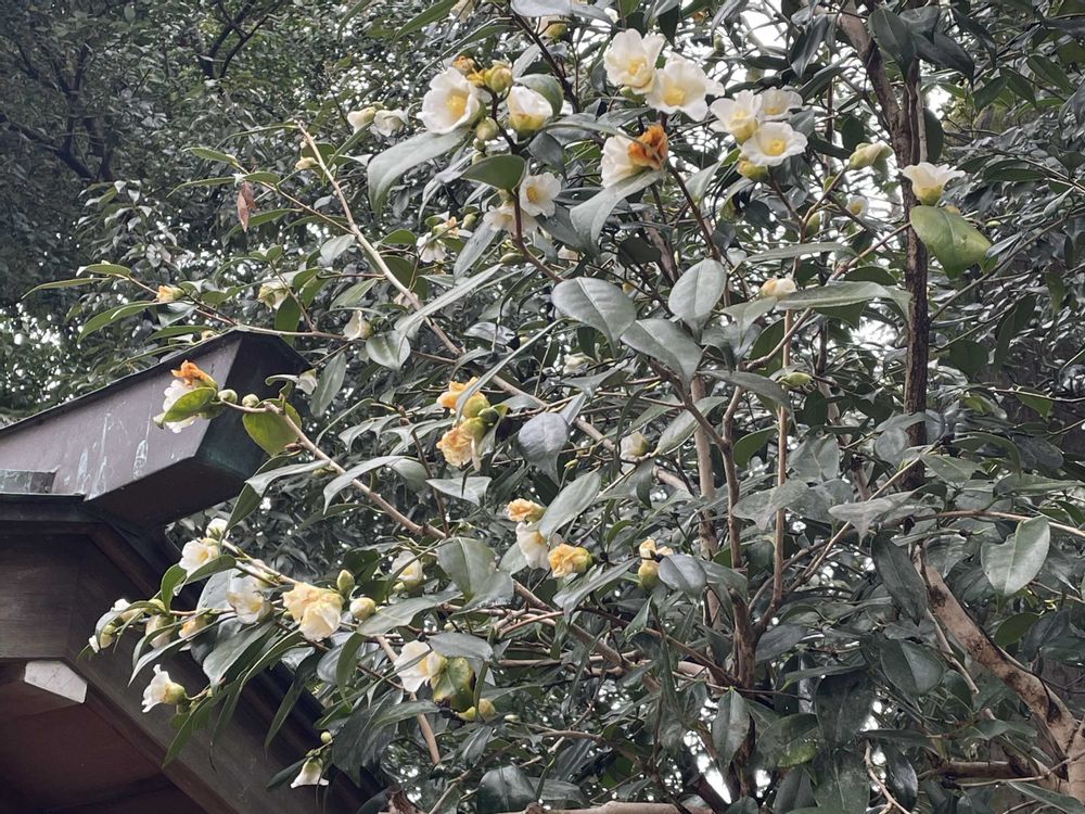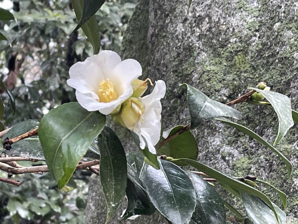 この冬初めて 椿の花が咲いてるのを見かけました🤍🌿😃