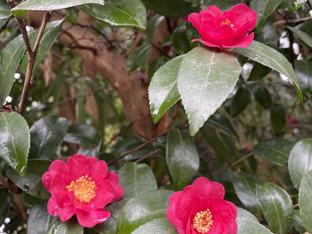 ④ 濃い色合いの山茶花🌸可愛いい😍
