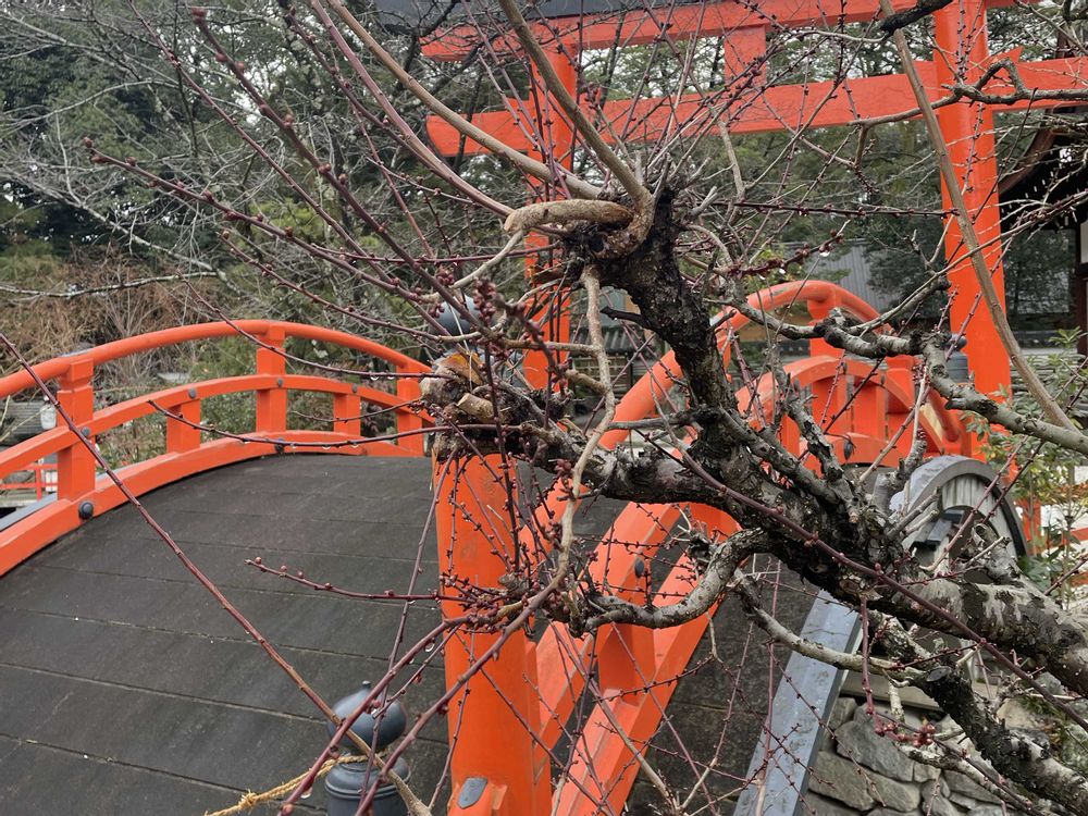 ⑤ 下鴨神社境内 御手洗川に架かる輪橋(そりはし) 光琳の梅は