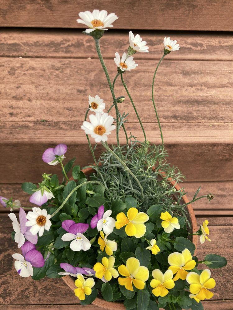 ビオラは毎年育てるし、今年は何か違うものを、と思いながらもひと冬育てた寄せ植え✨ビオラやっぱりかわい✨