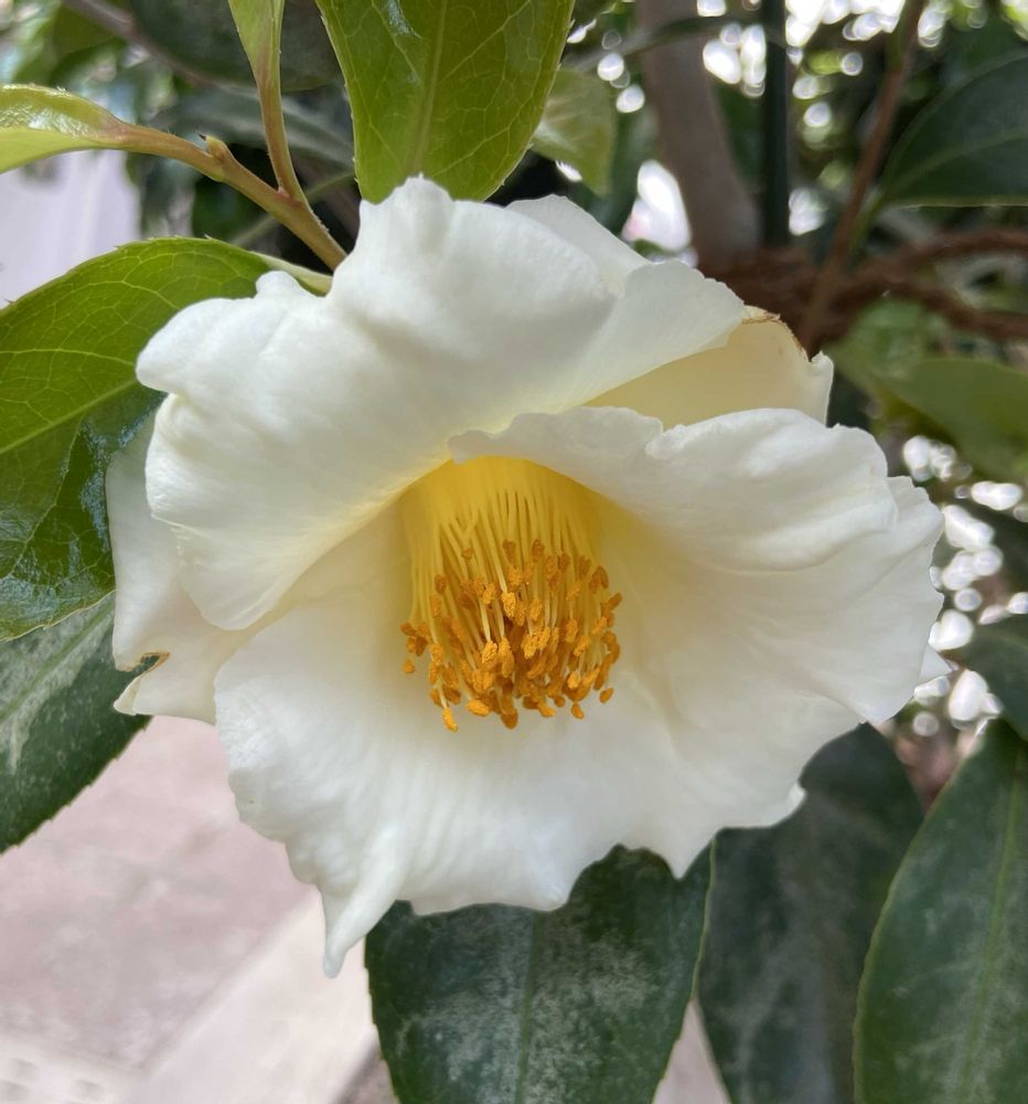 やはり白花にうっすら黄色が浮き上がる椿は清楚な雰囲気があり、とても良いですね(・∀・)イイ♪